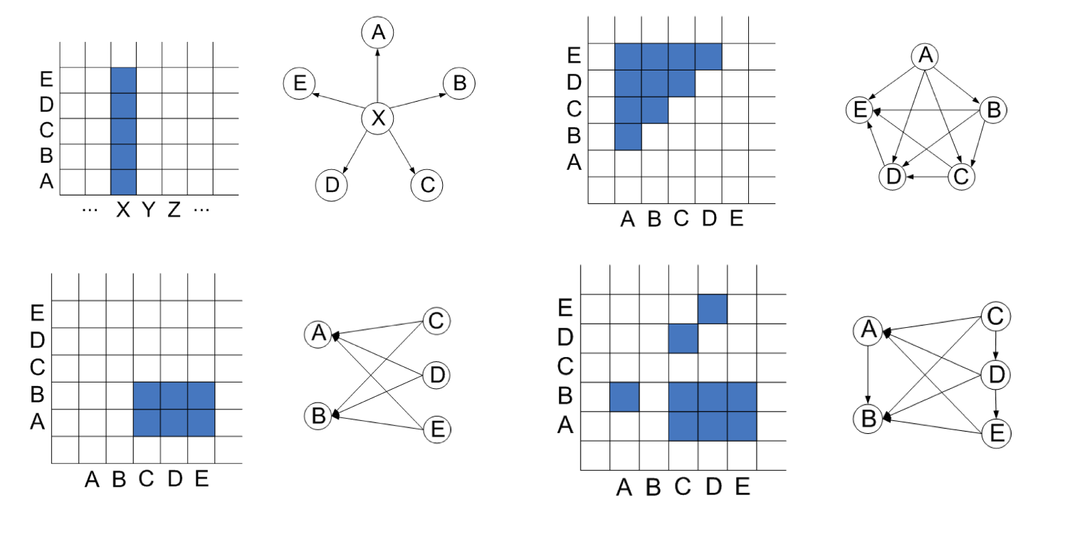 - Considerations: node ordering crucial to avoid excessive clutter from edge crossings