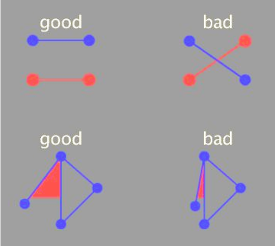 Good for topology tasks related to neighborhoods. Bad for topology tasks related to paths.