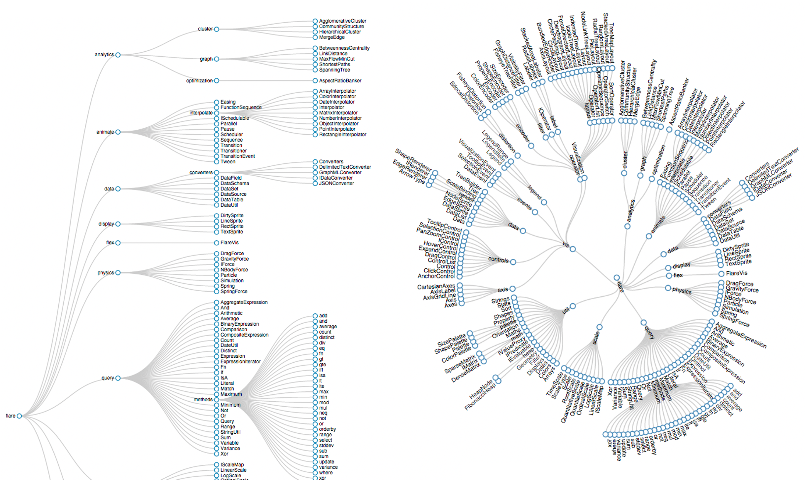 - Restricted node-link layouts: lay out nodes around circle or along line